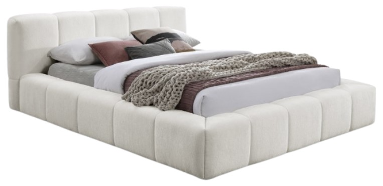 Upgrade your bedroom with the Carlin cream chenille queen bed, showcasing a unique yet elegant frame with channel tufting. This bed effortlessly combines contemporary style with practical design. Its smooth, velvety texture and refined details create a striking centerpiece, embodying both exquisite taste and timeless beauty.Read More
