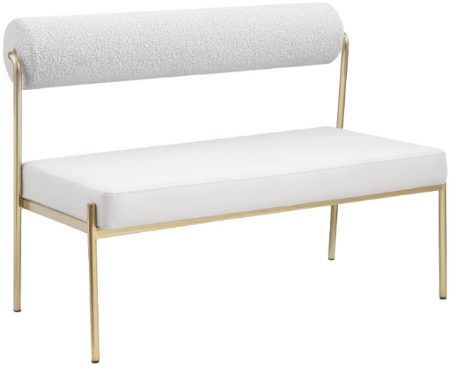Transform your dining area with this Carly cream faux leather seat and boucle fabric back bench. Its cream faux leather seat provides you with a soft place to sit, while its rich cream boucle back amps up the comfort level an extra notch.Read More