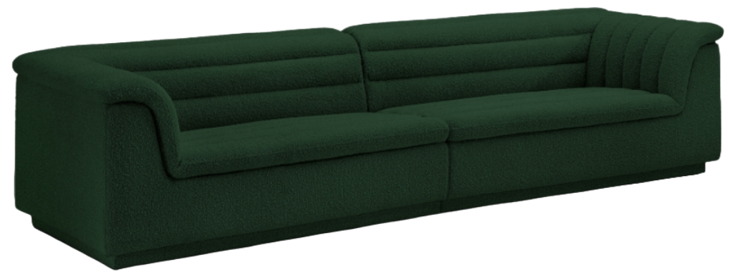 Upholstered in rich green boucle fabric, this seat quickly becomes everyone's favorite spot for curling up with a good book or smart device. Thick foam padding ensures a cozy, body-hugging experience while you watch TV or just relax.