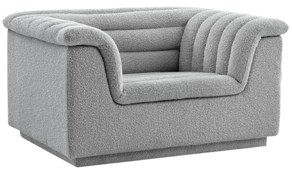Upholstered in rich grey boucle fabric, this seat quickly becomes everyone's favorite spot for curling up with a good book or smart device. Thick foam padding ensures a cozy, body-hugging experience. while you watch TV or just relax.