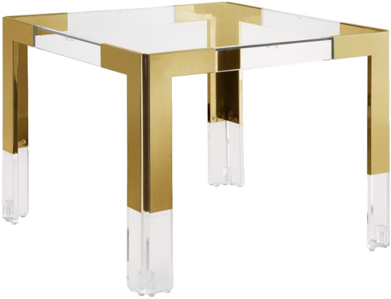 Enjoy intimate meals with those you love when you gather around this Casper dining table. This beautifully eye-catching table features a rich gold frame topped with a clear glass top for a rich, luxe look. Acrylic legs crown the gold stainless steel frame, adding to its contemporary feel.Read More