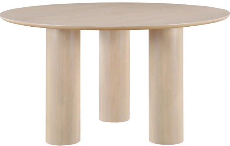 Dinner guests can't help but be impressed when they're seated at this Colosseum natural dining table. Its rich natural finish and oak veneer, crafted from a mix of solid wood and MDF, evoke mid-century modern charm. The distinctive three-column base and round top.Read More