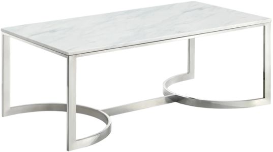 Lend your living room or den a modern slant with the Copley coffee table from Meridian Furniture. This coffee table features geometric bases, and a sleek chrome finish that gives your space a bold, up-to-the-minute look. Each table has a solid stone top for durability and style.Read More