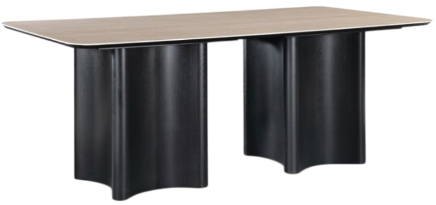 With its sleek silhouette and durable construction, the Corvina travertine sintered stone and black oak veneer dining table is a timeless investment. Its striking contrast of rectangular sintered stone top and wavy oak veneer base curate a unique design to elevate any space.Read More