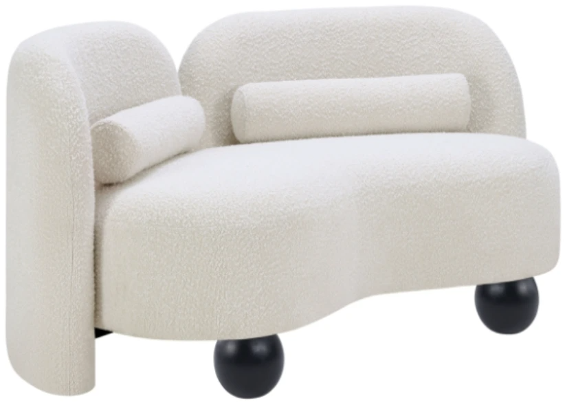 A cloud-like oasis of comfort, the Daphne cream boucle loveseat is a modern sensation. Its plush upholstery invites you to sink in and relax, while the curved design offers both support and opulence. The loveseat's unique silhouette is complemented by a choice of black or natural wooden legs, allowing you to customize it to your personal taste.Read More