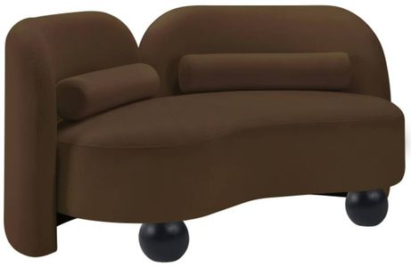 A cloud-like oasis of comfort, the Daphne brown velvet loveseat is a modern sensation. Its plush upholstery invites you to sink in and relax, while the curved design offers both support and opulence. The chair's unique silhouette is complemented by a choice of black or natural wooden legs, allowing you to customize it to your personal taste.Read More