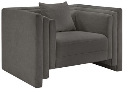 Make this Everett gray chenille fabric chair the center of a cozy reading nook. Handsome from every angle, this posh chair is plumply appointed to put supreme comfort within easy reach. Soft black chenille upholstery fabric adds to its lavish feel while a staggered design gives it a modern edge.Read More
