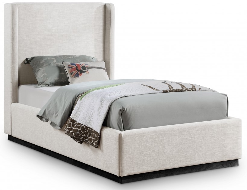 Unwind and relax as the cares of the day drift away from the confines of this Flynn linen textured fabric bed. An artfully designed bedroom masterpiece, this twin-sized bed offers a winged headboard that's extra tall to make a bold impression in your bedroom sanctuary.Read More
