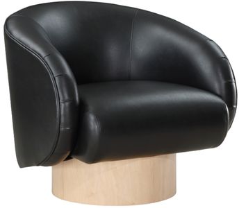 Give your room a distinctly modish look when you bring home this Gibson Vegan Leather Swivel Accent Chair. Wrapped in rich black vegan leather, this chair emanates a luxurious vibe and adds a touch of opulence to your room. The natural finish swivel, coupled with the ash wood veneer base.Read More
