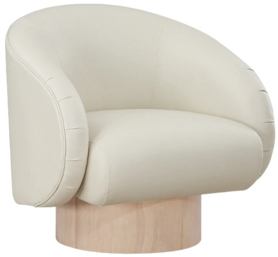 Give your room a distinctly modish look when you bring home this Gibson Vegan Leather Swivel Accent Chair. Wrapped in rich cream vegan leather, this chair emanates a luxurious vibe and adds a touch of opulence to your room. The natural finish swivel, coupled with the ash wood veneer base.Read More
