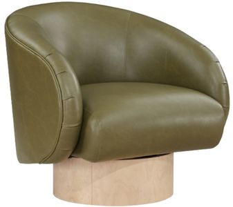 Give your room a distinctly modish look when you bring home this Gibson Vegan Leather Swivel Accent Chair. Wrapped in rich olive vegan leather, this chair emanates a luxurious vibe and adds a touch of opulence to your room. The natural finish swivel, coupled with the ash wood veneer base.Read More