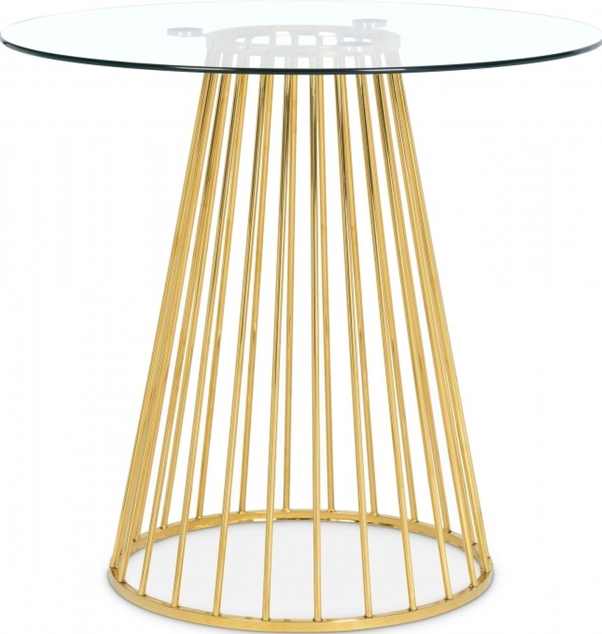Add a bold touch to your dining area with this chic Gio counter height table. Featuring a round, clear tempered glass tabletop and a polished gold metal base with a wired contemporary design, this dining table transforms your dining space into a stylish haven.Read More