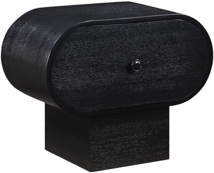 Slumber well knowing the things you need most at night are tucked out of sight and within easy reach with this Harlow black nightstand. Its rich black finish and oak veneer, crafted from a mix of solid wood and MDF, embody art deco elegance.Read More