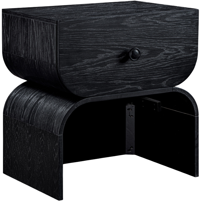 In the realm of modern design, the Jace black oak veneer nightstand strikes as a captivating masterpiece. Its sleek lines and curved silhouette create a captivating interplay of light and shadow. The spacious drawer provides ample storage for your essentials.Read More