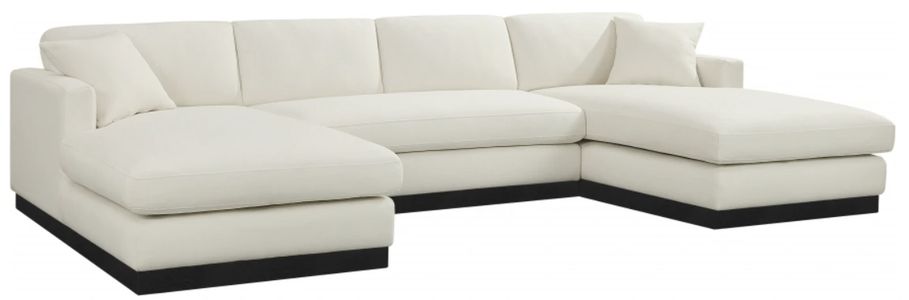 Gather your whole crew for family movie night on this cream Johanna linen textured fabric sectional sofa. Upholstered in rich cream linen textured fabric and featuring a black finish solid wood base, this sectional exudes a mid-century charm that's both elegant and comfortable.Read More
