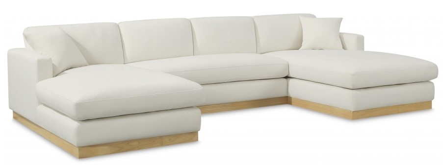 Gather your whole crew for family movie night on this cream Johanna linen textured fabric sectional sofa. Upholstered in rich cream linen-textured fabric and featuring a natural finish solid wood base, this sectional exudes a mid-century charm that's both elegant and comfortable.Read More