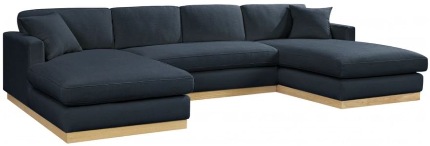 Gather your whole crew for family movie night on this navy Johanna linen textured fabric sectional sofa. Upholstered in rich black linen textured fabric and featuring a natural finish solid wood base, this sectional exudes a mid-century charm that's both elegant and comfortable. The eucalyptus wood frame provides durability.Read More