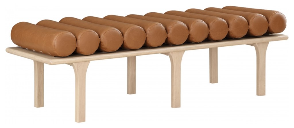 Outfit your foyer, bedroom, dressing room, or other area of the home with this handsome cognac Landon vegan leather bench. A rolled vegan leather seat upholstered in cognac vegan leather gives this uniquely designed bench the luxe look of leather without the maintenance requirements.Read More