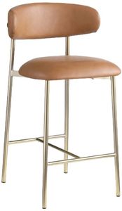 Grace, comfort, and elegance collide in the design of this Lupita cognac vegan leather counter stool. Upholstered in soft cognac vegan leather and supported by a brushed gold metal frame, it radiates luxury and modern sophistication. Perfect for kitchen islands or home bars, its counter height and contemporary design ensure both style and comfort.Read More