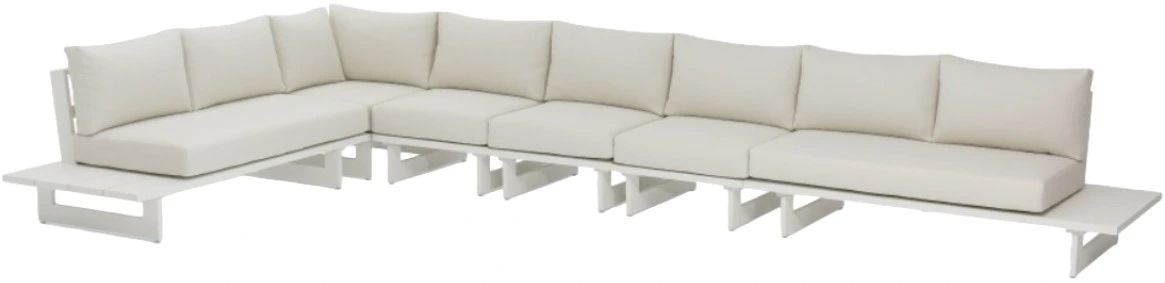 This modular sectional has cream water resistant fabric with a base made from white aluminum, so it's sturdy, tough, and ready to face the elements with impeccable beauty, season in and season out. Shop the contemporary pieces in this collection to create the outdoor entertaining area of your dreams.