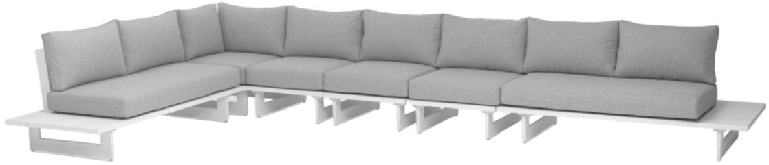 This modular sectional has gray water resistant fabric with a base made from white aluminum, so it's sturdy, tough, and ready to face the elements with impeccable beauty, season in and season out. Shop the contemporary pieces in this collection to create the outdoor entertaining area of your dreams.