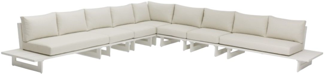 This modular sectional has cream water resistant fabric with a base made from white aluminum, so it's sturdy, tough, and ready to face the elements with impeccable beauty, season in and season out. Shop the contemporary pieces in this collection to create the outdoor entertaining area of your dreams.