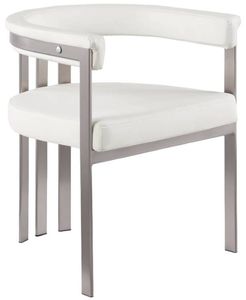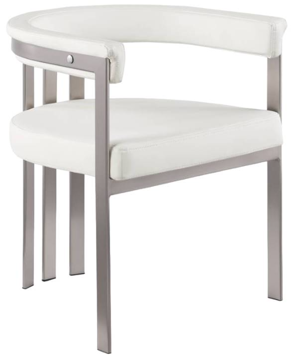 Turn your dining space into a contemporary haven with this Marcello cream vegan leather dining chair. Its soft, high-end cream vegan leather is soft for you to sit on, while its brushed chrome iron frame ensures durability for years to come.Read More