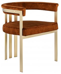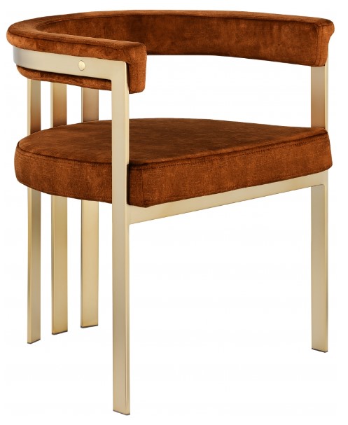 Turn your dining space into a contemporary haven with this Marcello cognac velvet dining chair. Its soft, high-end cognac velvet is soft for you to sit on, while its brushed brass iron frame ensures durability for years to come. Its curved back provides support while you sit and enjoy your meal.Read More