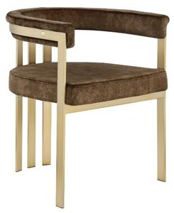 Turn your dining space into a contemporary haven with this Marcello brown velvet dining chair. Its soft, high-end brown velvet is soft for you to sit on, while its brushed brass iron frame ensures durability for years to come. Its curved, contemporary design is perfect for any modern home.Read More
