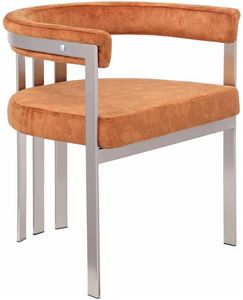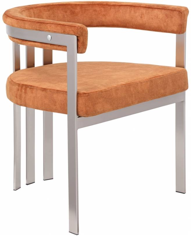 Turn your dining space into a contemporary haven with this Marcello cognac velvet dining chair. Its soft, high-end cognac velvet is soft for you to sit on, while its brushed chrome iron frame ensures durability for years to come. Its curved back provides support while you sit and enjoy your meal.Read More