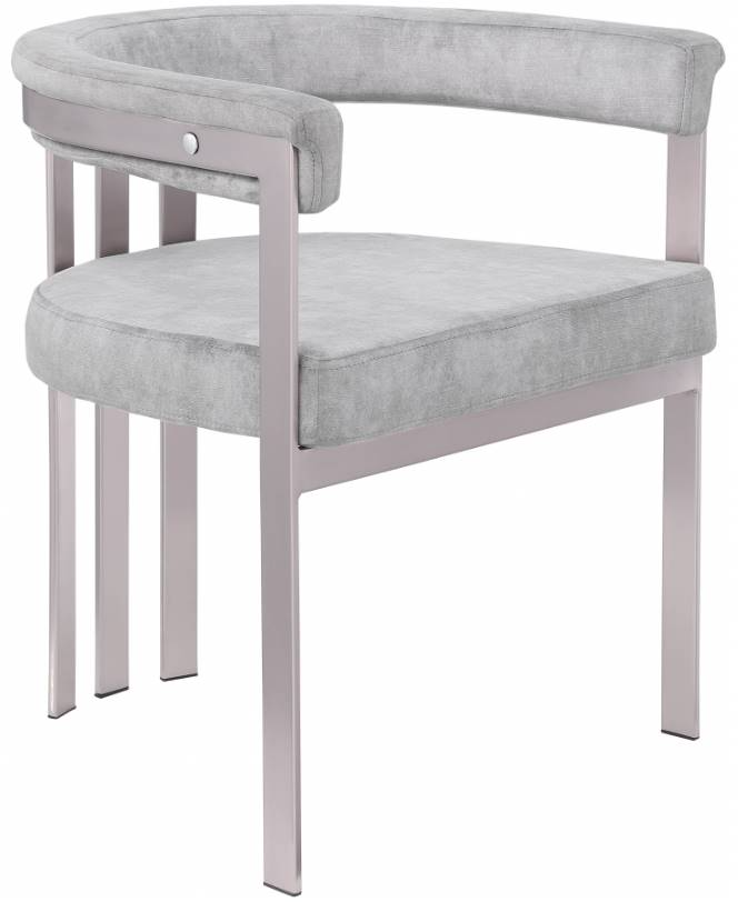 Turn your dining space into a contemporary haven with this Marcello gray velvet dining chair. Its soft, high-end gray velvet is soft for you to sit on, while its brushed chrome iron frame ensures durability for years to come.Read More