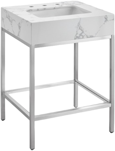 Give your bathroom a fresh new look with this Marmo 24-inch bathroom vanity. This eye-grabbing vanity gives your restroom a spa vibe that's oozing contemporary charm and sophistication. The white marble sink features white veining for an upscale presentation and rests on a brushed chrome-finish stainless steel base for long-lasting beauty and performance.Read More