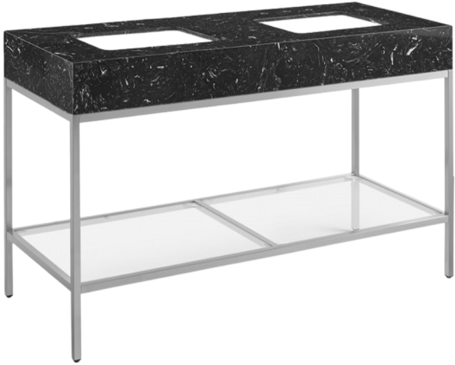 Give your bathroom a fresh new look with this Marmo 60-inch bathroom vanity. This eye-grabbing vanity gives your restroom a spa vibe that's oozing contemporary charm and sophistication. The black marble sink features white veining for an upscale presentation and rests on a brushed chrome-finish stainless steel base for long-lasting beauty and performance.Read More
