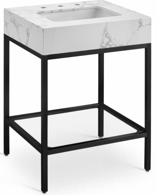 Give your bathroom a fresh new look with this Marmo 24-inch bathroom vanity. This eye-grabbing vanity gives your restroom a spa vibe that's oozing contemporary charm and sophistication. The white marble sink features white veining for an upscale presentation and rests on a matte black-finish stainless steel base for long-lasting beauty and performance.Read More