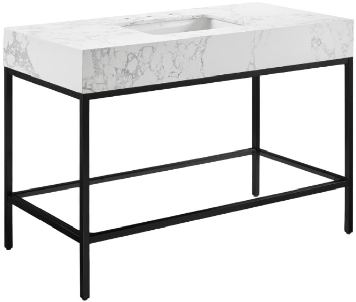 Give your bathroom a fresh new look with this Marmo 48-inch bathroom vanity. This eye-grabbing vanity gives your restroom a spa vibe that's oozing contemporary charm and sophistication. The white marble sink features white veining for an upscale presentation and rests on a matte black-finish stainless steel base for long-lasting beauty and performance.Read More