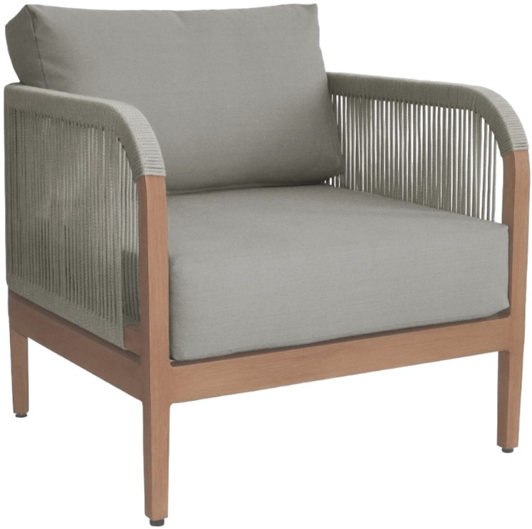 Resilient grey fabric cushions, water-resistant and plump, have quick-dry foam inserts so you enjoy leisure time without worry. With its contemporary resort look, this chair adds sophistication to any patio, porch, or deck setting.