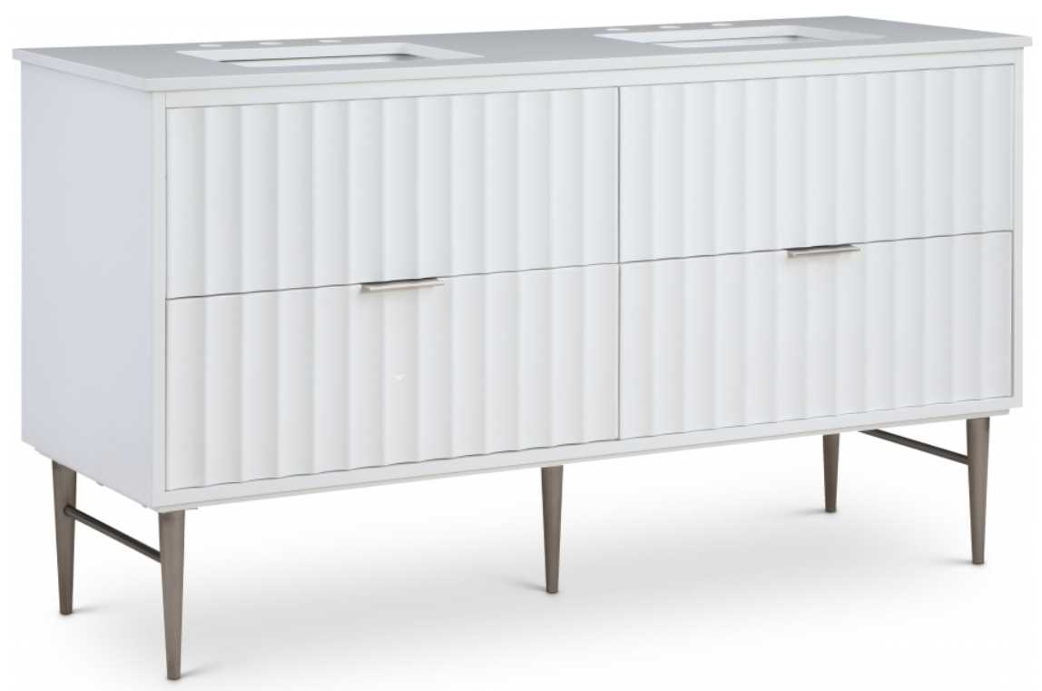 Your bathroom gets a revamp with this Modernist 60-inch bathroom vanity. This lovely vanity is a must for the contemporary bathroom space and features a rich white finish in brushed chrome for lasting beauty and performance. Made from solid wood and wood products, this vanity has a pretty quartz top for enduring good looks.Read More