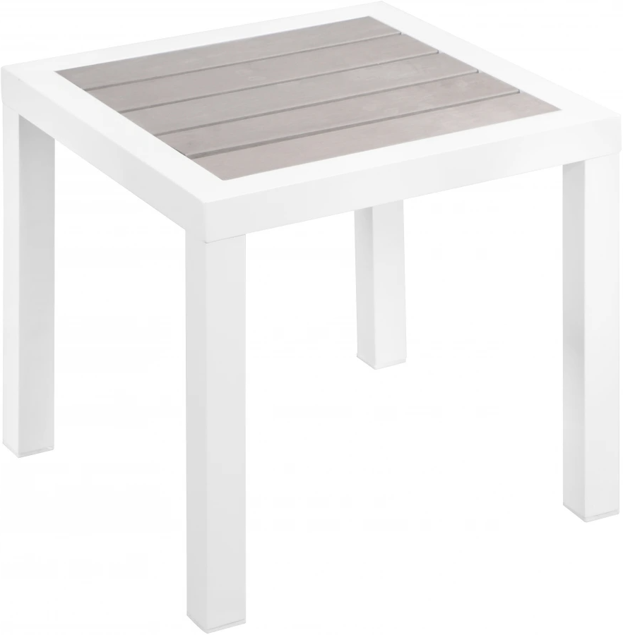 Add the comforts of indoors to your outdoor living space with this Nizuc end table. This sophisticated modern table is an ideal spot for resting a frosty drink on a sunny day. The top of the table is made from light gray Wood Look accent paneling and is slatted, so moisture dissipates easily through its cracks.Read More