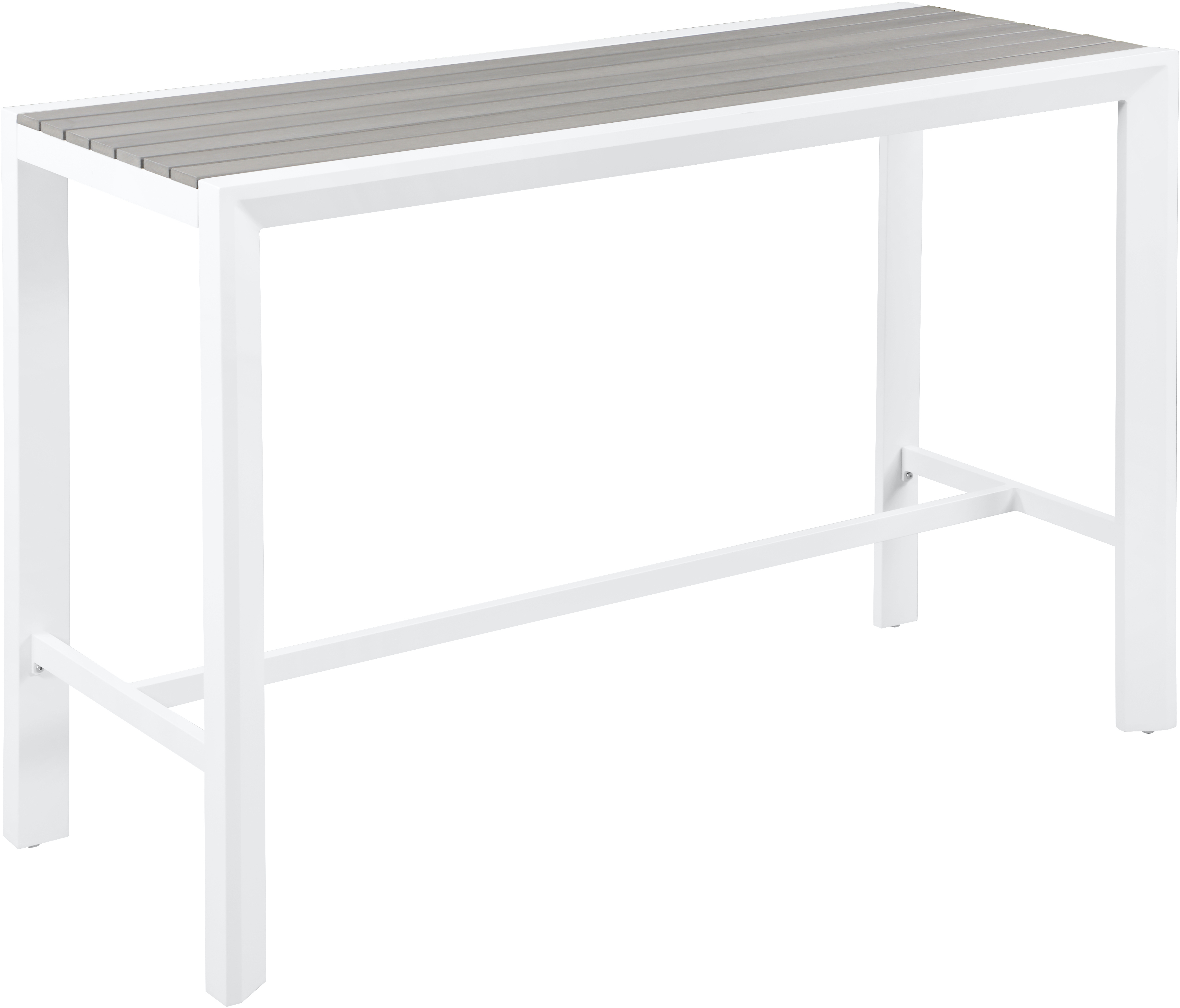 Light grey polywood on top contrasts nicely with the white frame, which is made from aluminum for lasting beauty and performance.