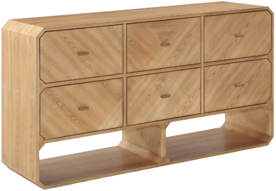 Six drawers are amply sized for holding undergarments, tees, and unmentionables out of sight and within easy reach. Rich ash veneer adds durability and lasting beauty to the dresser's design, whether purchased as a standalone piece or alongside other pieces in the Parker collection.