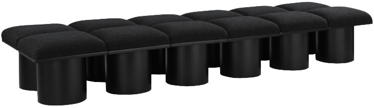 Bring valuable seating and remarkable style to your space with this black Pavilion boucle fabric bench, an exquisite balance of style and usability for the entryway, bedroom, and beyond. Crafted from oak veneer with a black finish, this bench has a 4-inch-thick seat cushion that's channel-tufted for a touch of luxury.Read More