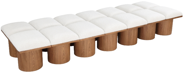 The bench's columnar bases add a dash of art deco design, making it a captivating focal point in any room.
