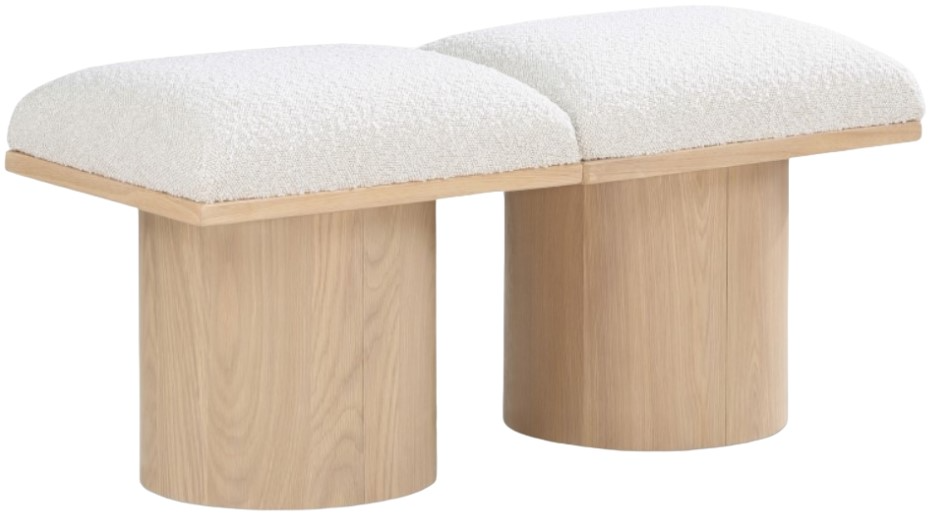 Bring valuable seating and remarkable style to your space with this cream Pavilion boucle fabric bench, an exquisite balance of style and usability for the entryway, bedroom, and beyond. Crafted from oak veneer with a natural finish, this bench has a 4-inch-thick seat cushion that's channel-tufted for a touch of luxury.Read More
