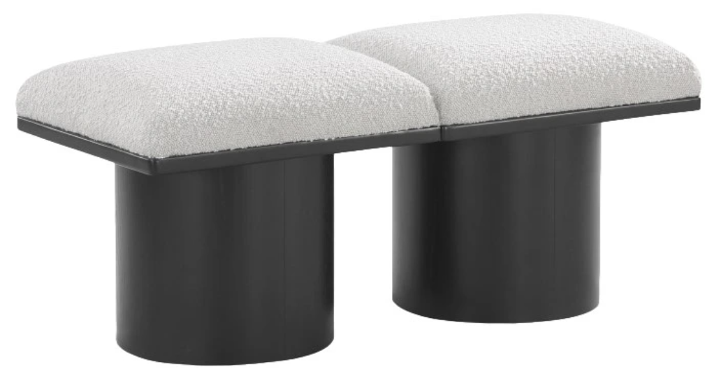 Bring valuable seating and remarkable style to your space with this cream Pavilion Boucle Fabric Bench, an exquisite balance of style and usability for the entryway, bedroom, and beyond. Crafted from oak veneer with a black finish, this bench has a 4-inch-thick seat cushion that's channel-tufted for a touch of luxury.Read More