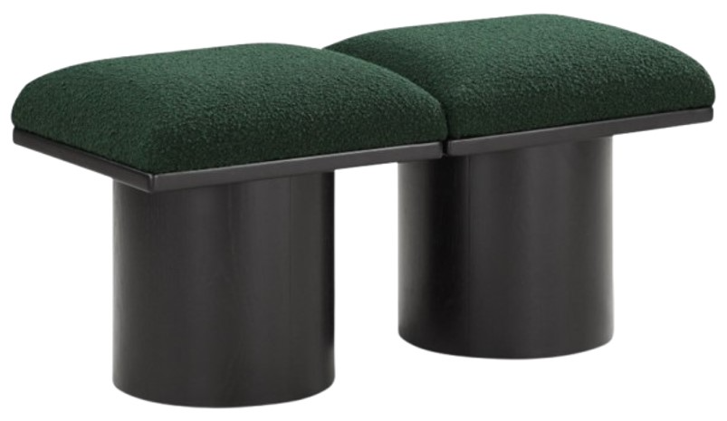 Bring valuable seating and remarkable style to your space with this green Pavilion Boucle Fabric Bench, an exquisite balance of style and usability for the entryway, bedroom, and beyond. Crafted from oak veneer with a black finish, this bench has 4-inch-thick seat cushion that's channel-tufted for a touch of luxury.Read More