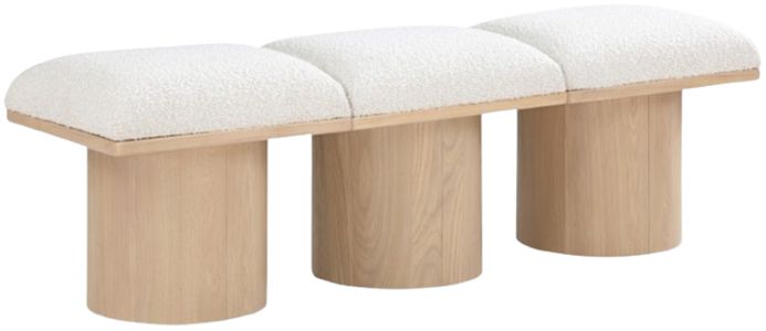 Bring valuable seating and remarkable style to your space with this cream Pavilion boucle fabric bench, an exquisite balance of style and usability for the entryway, bedroom, and beyond. Crafted from oak veneer with a natural finish, this bench has a 4-inch-thick seat cushion that's channel-tufted for a touch of luxury.Read More