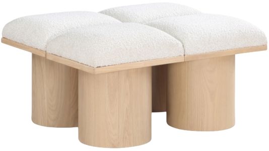 Bring valuable seating and remarkable style to your space with this cream Pavilion boucle fabric bench, an exquisite balance of style and usability for the entryway, bedroom, and beyond. Crafted from oak veneer with a natural finish, this bench has a 4-inch-thick seat cushion that's channel-tufted for a touch of luxury.Read More