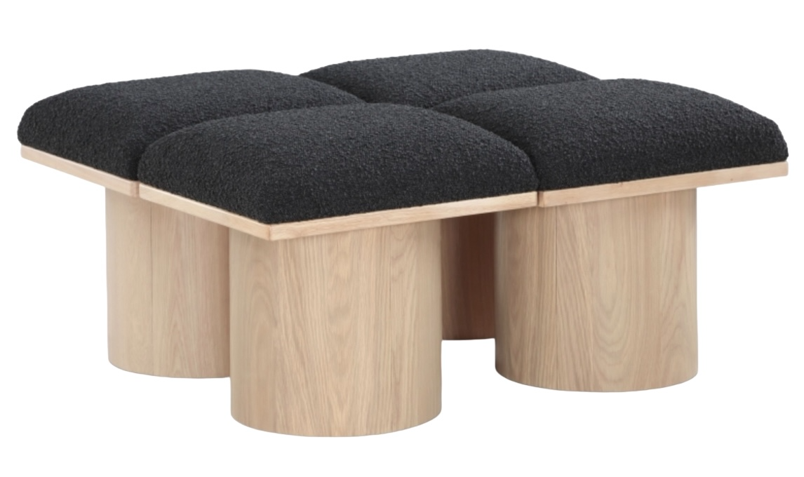 Bring valuable seating and remarkable style to your space with this black Pavilion boucle fabric bench, an exquisite balance of style and usability for the entryway, bedroom, and beyond. Crafted from oak veneer with a natural finish, this bench has a 4-inch-thick seat cushion that's channel-tufted for a touch of luxury.Read More