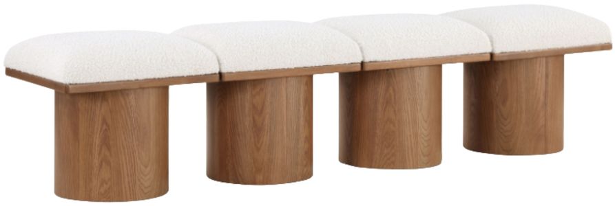 Bring valuable seating and remarkable style to your space with this cream Pavilion boucle fabric bench, an exquisite balance of style and usability for the entryway, bedroom, and beyond. Crafted from oak veneer with a walnut brown finish, this bench has a 4-inch-thick seat cushion that's channel-tufted for a touch of luxury.Read More