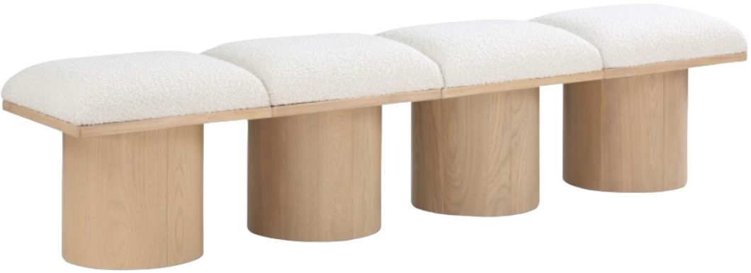 Bring valuable seating and remarkable style to your space with this cream Pavilion boucle fabric bench, an exquisite balance of style and usability for the entryway, bedroom, and beyond. Crafted from oak veneer with a natural finish, this bench has a 4-inch-thick seat cushion that's channel-tufted for a touch of luxury.Read More